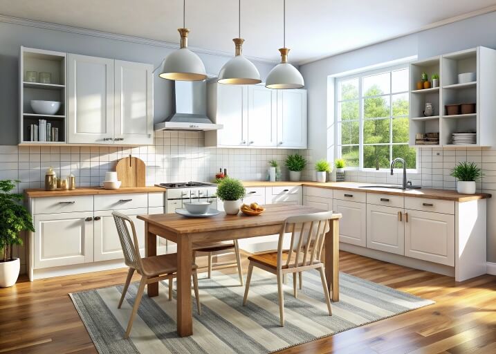 Еще один важный аспект, который нельзя упускать из виду, – это освещение. Кухонные светильники должны быть не только функциональными, но и эстетичными. Встроенные светильники в шкафах или под ними создадут дополнительное освещение рабочей зоны, а красивые подвесные светильники над обеденным столом добавят кухне уют и стиль.