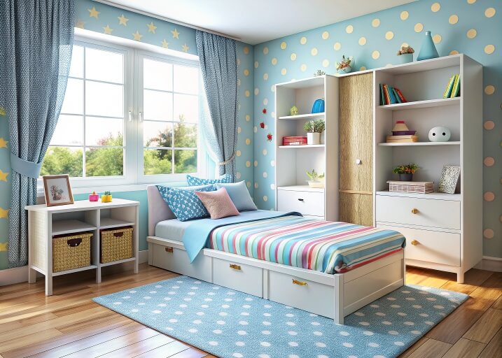 Не стоит забывать и о безопасности. Все углы мебели должны быть закруглены, а материалы – гипоаллергенны и экологически чистыми. Стоит избегать стеклянных элементов и острых деталей, которые могут представлять опасность для ребенка. Важно также позаботиться о правильной фиксации мебели к стенам, чтобы предотвратить ее опрокидывание.