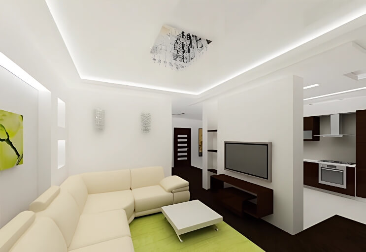 Светодиодные ленты особенно популярны благодаря своей гибкости и многообразию цветов. Они легко монтируются по периметру потолка или в специальных нишах, создавая эффект «парящего» потолка. Такой прием особенно впечатляет в современных интерьерах, где преобладают минималистичные и лаконичные формы. Плюс к этому, светодиодные ленты экономичны в плане энергопотребления, что тоже является немаловажным фактором в наши дни.